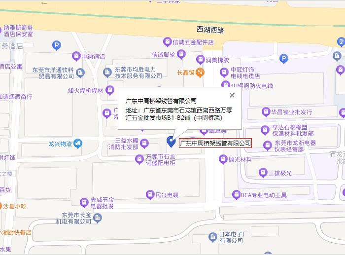 公司地址:广东省东莞市石碣镇城中前进路17号2栋101室(中周桥架)
